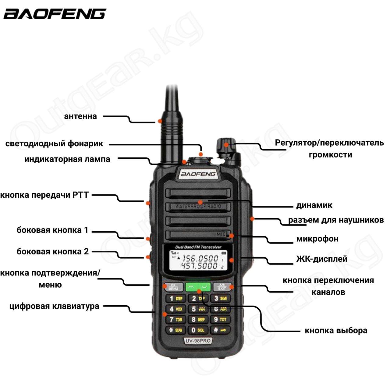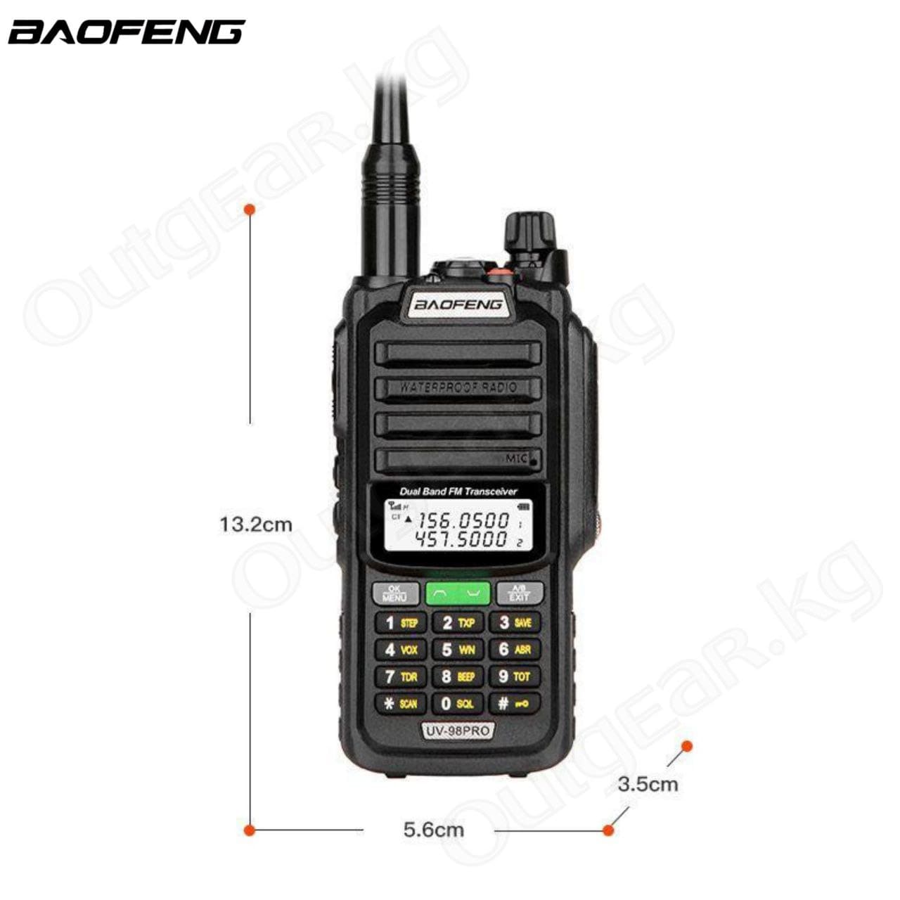 Baofeng UV-98 PRO — это надёжная двухдиапазонная аналоговая рация с повышенной мощностью до 8 Вт и защитой IP68, способная выдерживать сильный дождь и даже кратковременное погружение в воду. Идеальный выбор для охоты, рыбалки, походов, оффроуда, альпинизма, спасательных служб и охраны.