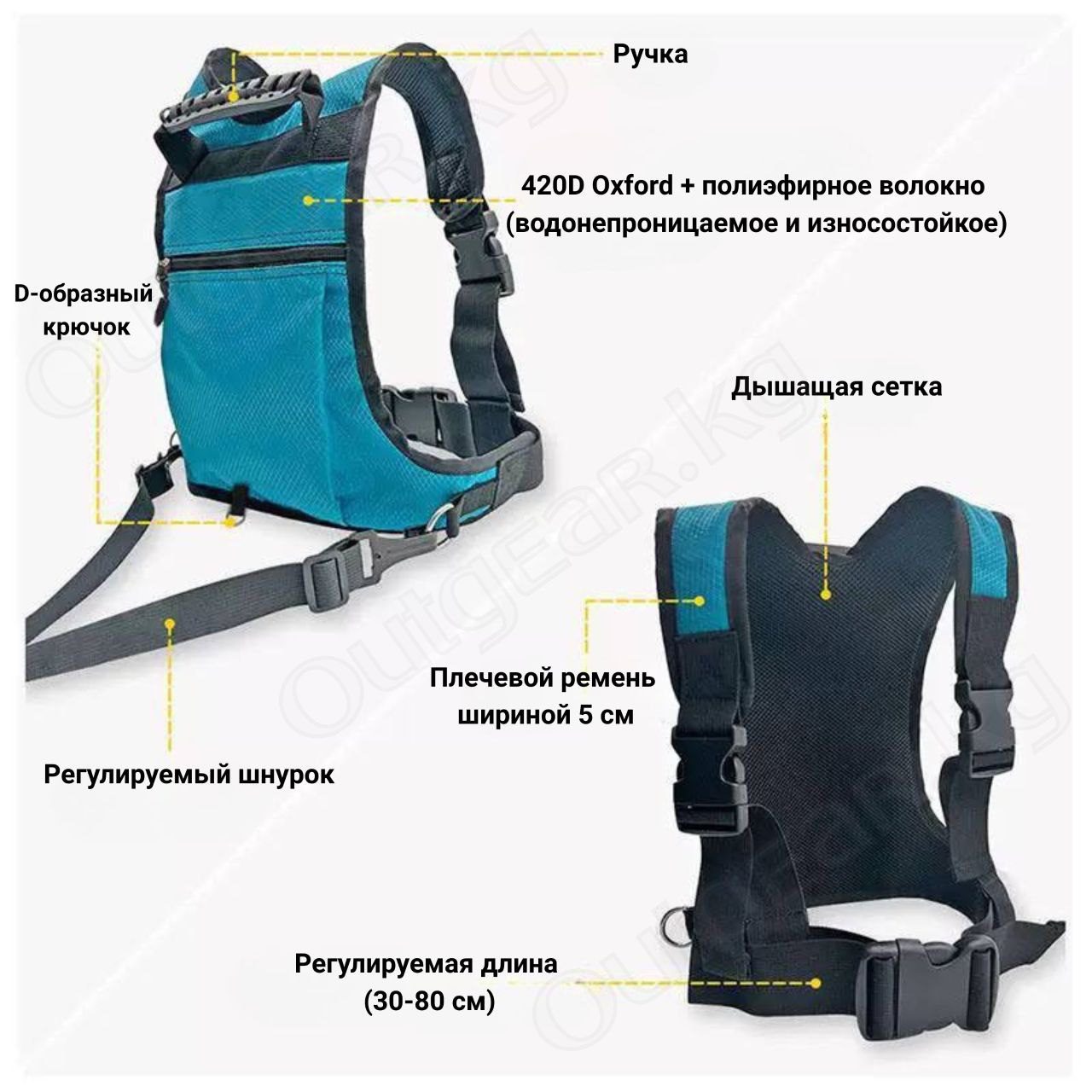 • Прочная ткань — материал 420D Oxford + полиэстер с водоотталкивающей пропиткой.