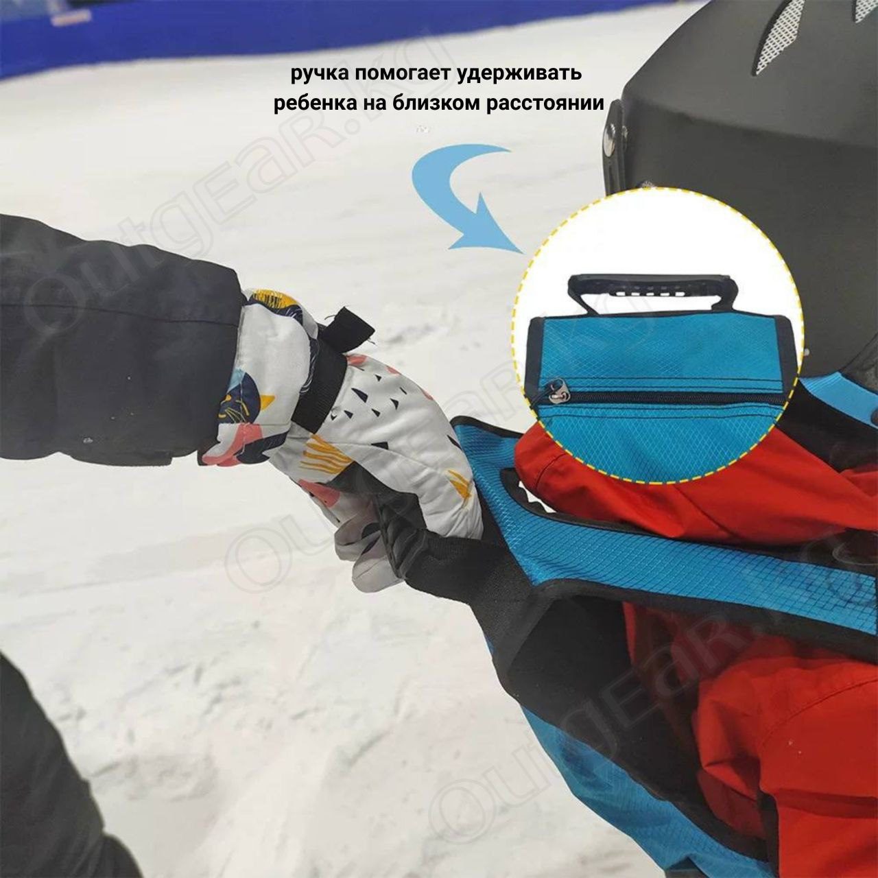 Позволяет взрослому контролировать скорость и направление ребёнка, обеспечивая безопасность и комфорт во время первых занятий на склоне.